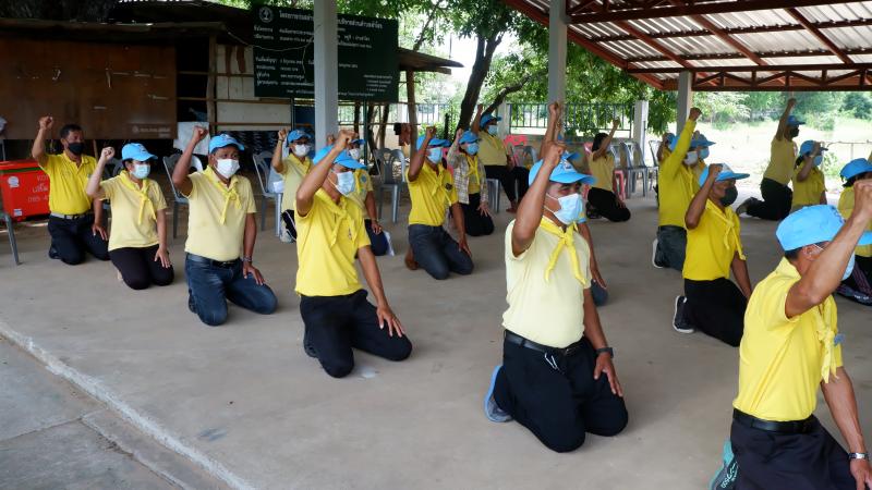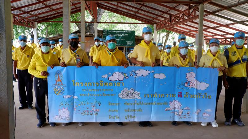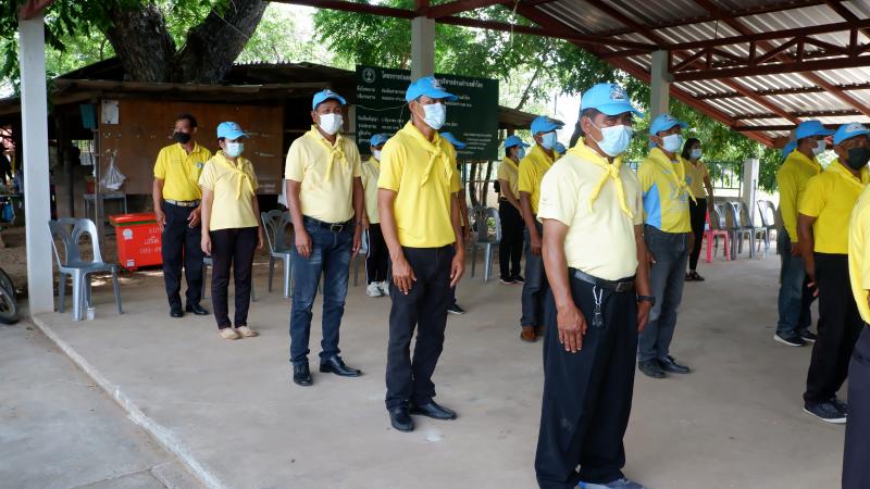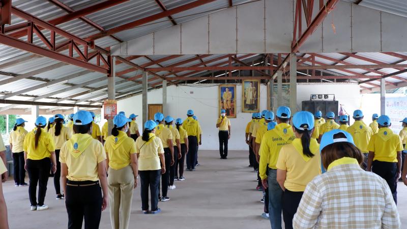 กิจกรรม "67 วันสร้างสุขพลับพลาชัย" การแต่งกาย ชุดจิตอาสา เสื้อสีเหลือง ผ้าพันคอ ป้ายชื่อ สวมหมวก วันที่ 11 พ.ค. 2565 ณ หมู่ที่ 1 บ้านสำโรง (6 ภาพ )
