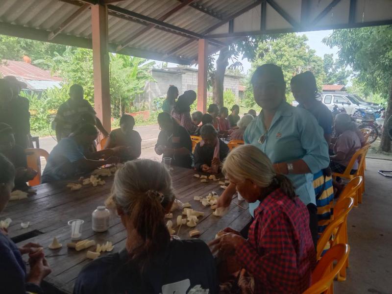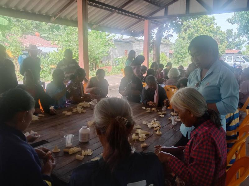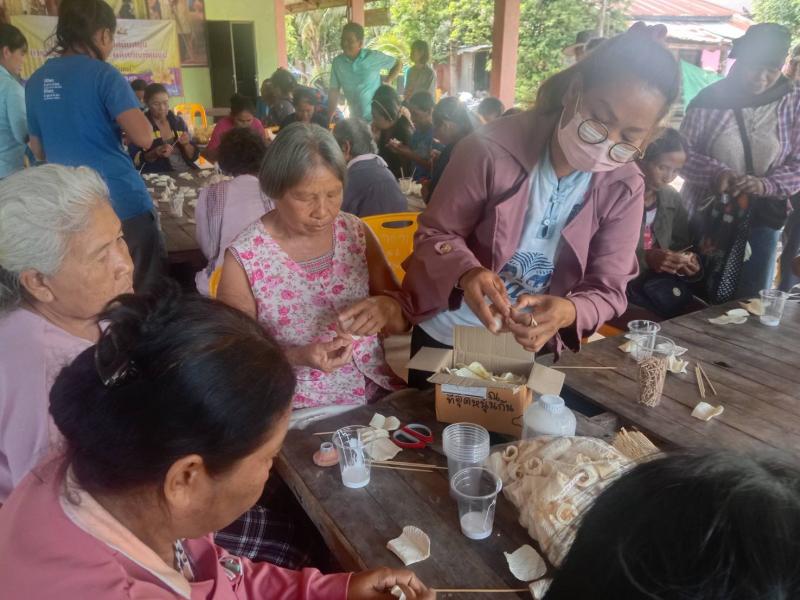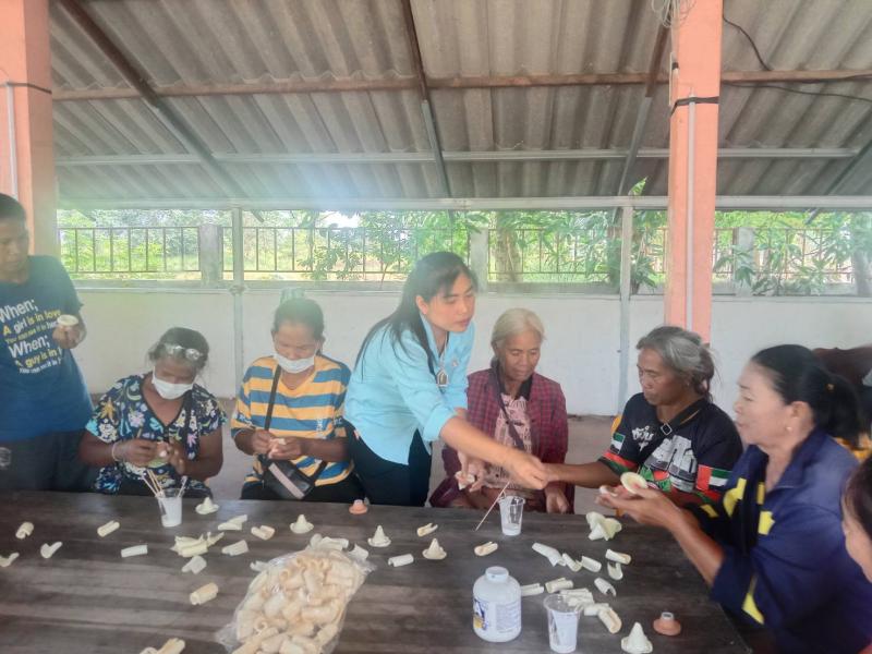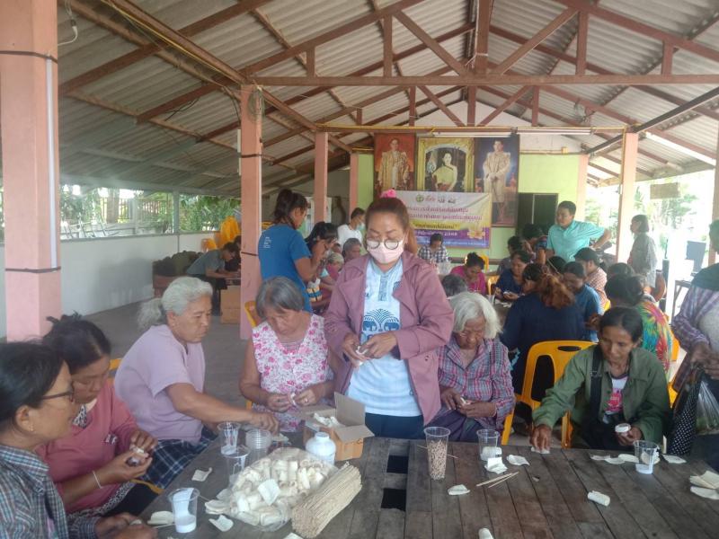 โครงการส่งเสริมสนับสนุนการประกอบอาชีพผลิตภัณฑ์ชุมชน "การทำดอกไม้จันทน์ " ณ.ศาลาประชาคม หมู่ที่ 6 วันที่ 21 มิถุนายน 66
