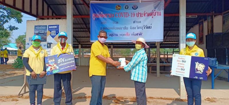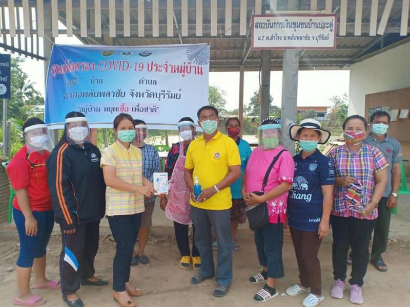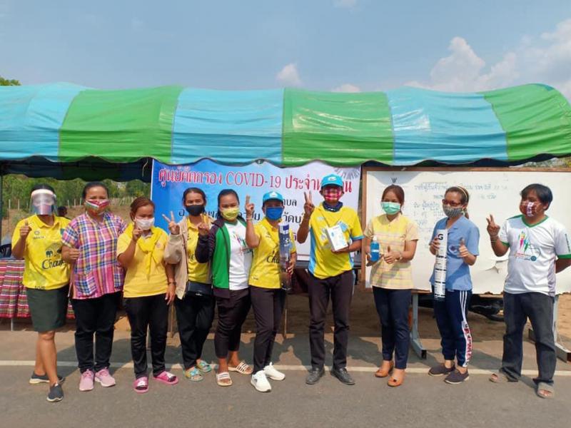 ภาพกิจกรรม : อบต.สำโรง โดย นายจันทา เพชรประโคน นายกองค์การบริหารส่วนตำบลสำโรง ร่วมกับ รพ.สต. อสม. พนักงานส่วนตำบล เดินรณรงค์ป้องกันไวรัสโคโรน่า 2019 และมอบเครื่องวัดอุณหภูมิ หน้ากากอนามัย และเจลแอลกอฮอล์ล้างมือให้จุดคัดกรอง หมู่ที่ 1-11 ตำบลสำโรง (จำนวน 9 ภาพ)