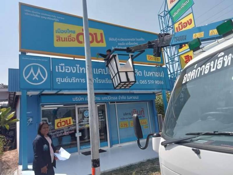 กองคลัง อบต สำโรง ออกวัดภาษีป้าย ประจำปี2567 ขอบคุณน้องๆทีมงานรถกระเช้าที่ให้ความอนุเคราะห์