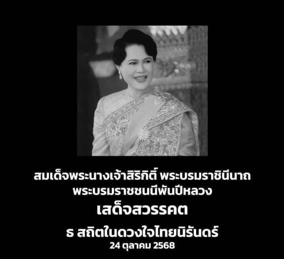 สำนักพระราชวัง เผยแพร่ประกาศ สมเด็จพระนางเจ้าสิริกิติ์ พระบรมราชินีนาถ พระบรมราชชนนีพันปีหลวง สวรรคต [24 ตุลาคม 2568]