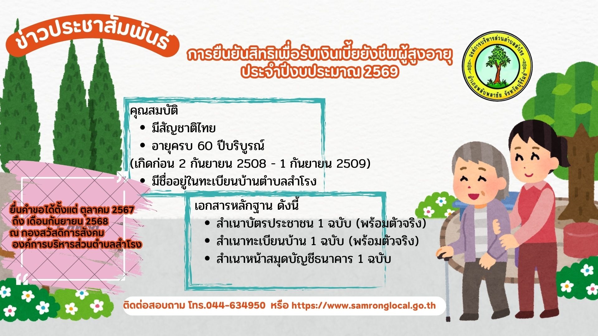 การยืนยันสิทธิเพื่อรับเงินเบี้ยยังชีพผู้สูงอายุ ประจำปีงบประมาณ 2569