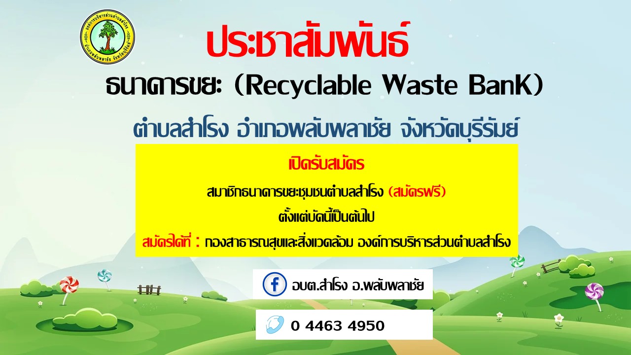 ประชาสัมพันธ์การรับสมัครสมาชิกธนาคารขยะ