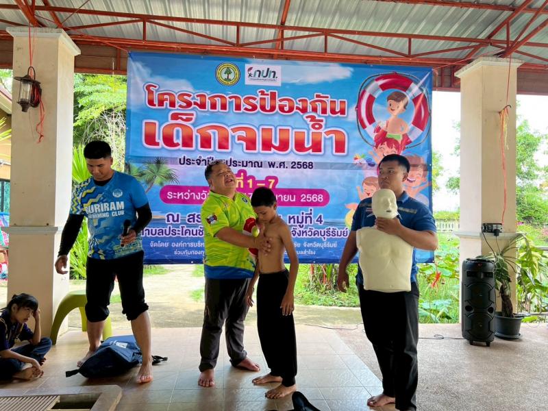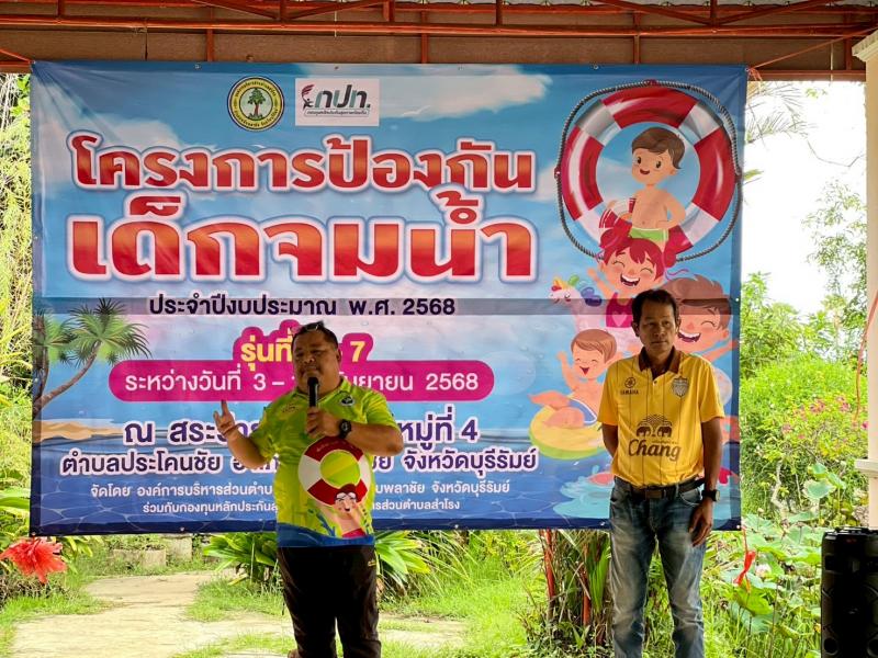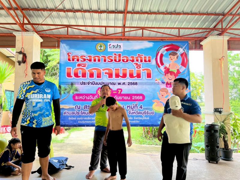 รายละเอียด : วันที่ 8 กันยายน 2568 องค์การบริหารส่วนตำบลสำโรง ได้จัดกิจกรรมโครงการป้องกันเด็กจมน้ำ ปีงบประมาณ 2568 รุ่นที่ 4 โรงเรียนบ้านเสม็ด ณ สระว่ายน้ำกุนกัน ต.ประโคนชัย อ.ประโคนชัย จ.บุรีรัมย์